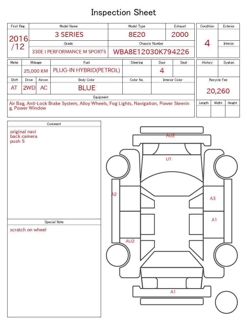BMW 3 SERIES 2016/12 330E I PERFORMANCE M SPORTS